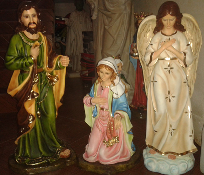 Diseño y elaboración de imágenes como vírgenes, cristos , viacrucis, esculturas históricas, nacimientos, santos actuales, bustos, imágenes monumentales, trabajos sobre diseño , replica de imágenes, elaborado en madera, fibra de vidrio y resina, pasta fina, caña, fibra de maguey.